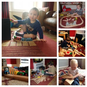 The toddler is 29 months old. He has always loved toys, the noisier and more interactive the better. He’s a typical boy and despite my best intentions at introducing a variety of toys his firm favourite is his train, set since he was about 18 months old. Now I have to be honest and say I may have spoilt him a little by getting him 4 different sets. We’ve been really lucky and he was given a wooden Brio train set. This was his first set which we’ve added to and is his firm favourite. Next up was a Chuggington…