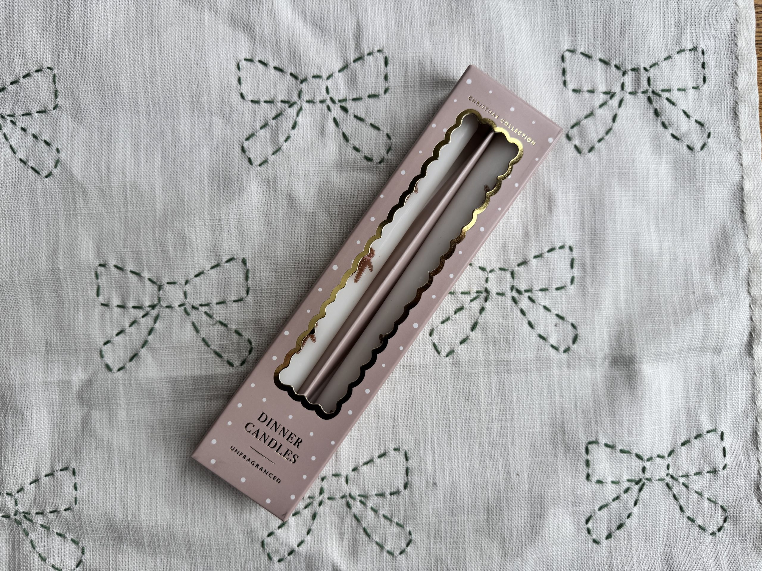 Baked gingerbread and spice dinner candles x 2, un-fragranced. Decorated with mini gingerbread men. From ASDA, priced £4.00