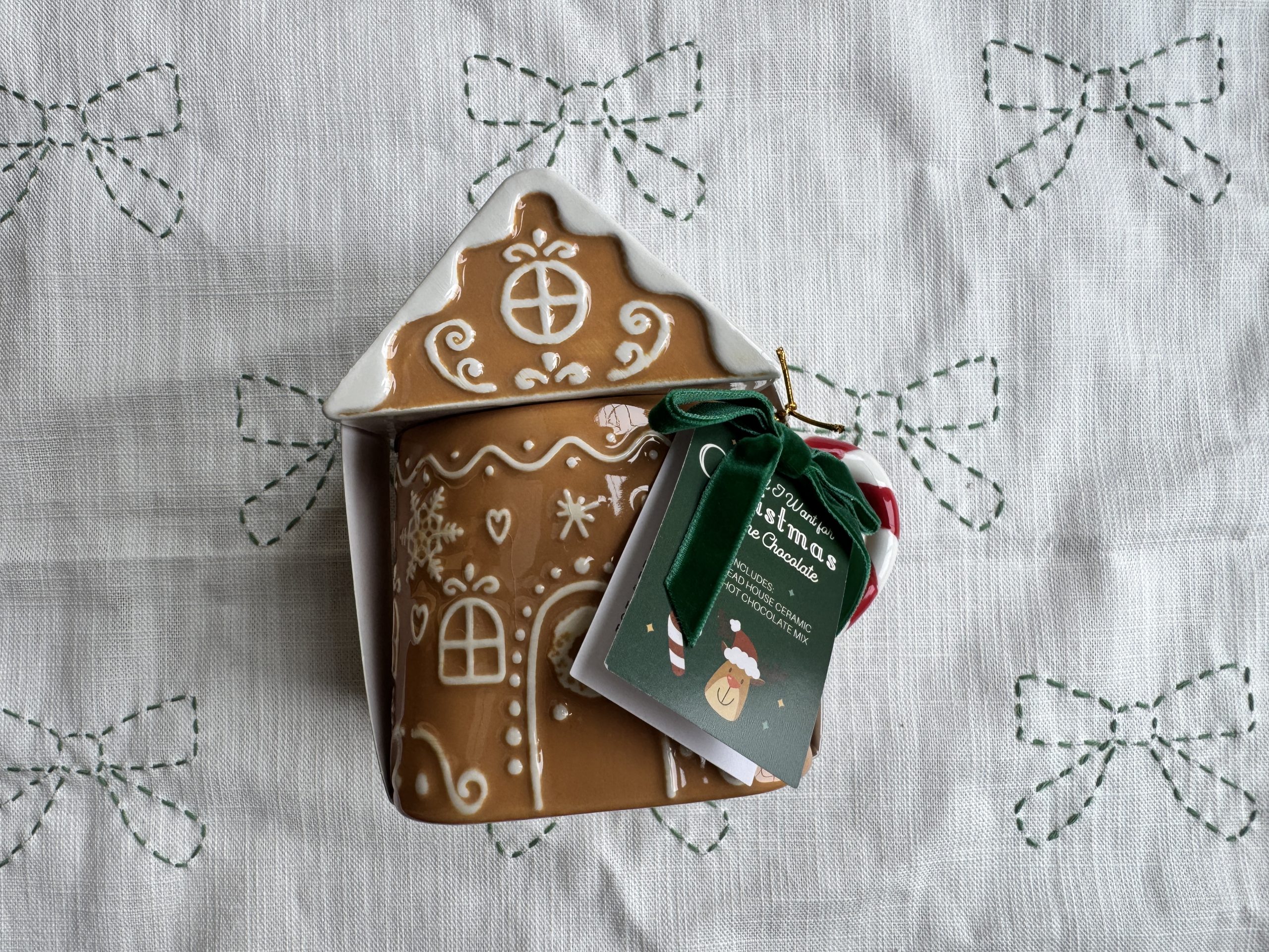 Christmas Gingerbread House Ceramic Mug with Hot Chocolate mix. From Wilko, priced £9.99