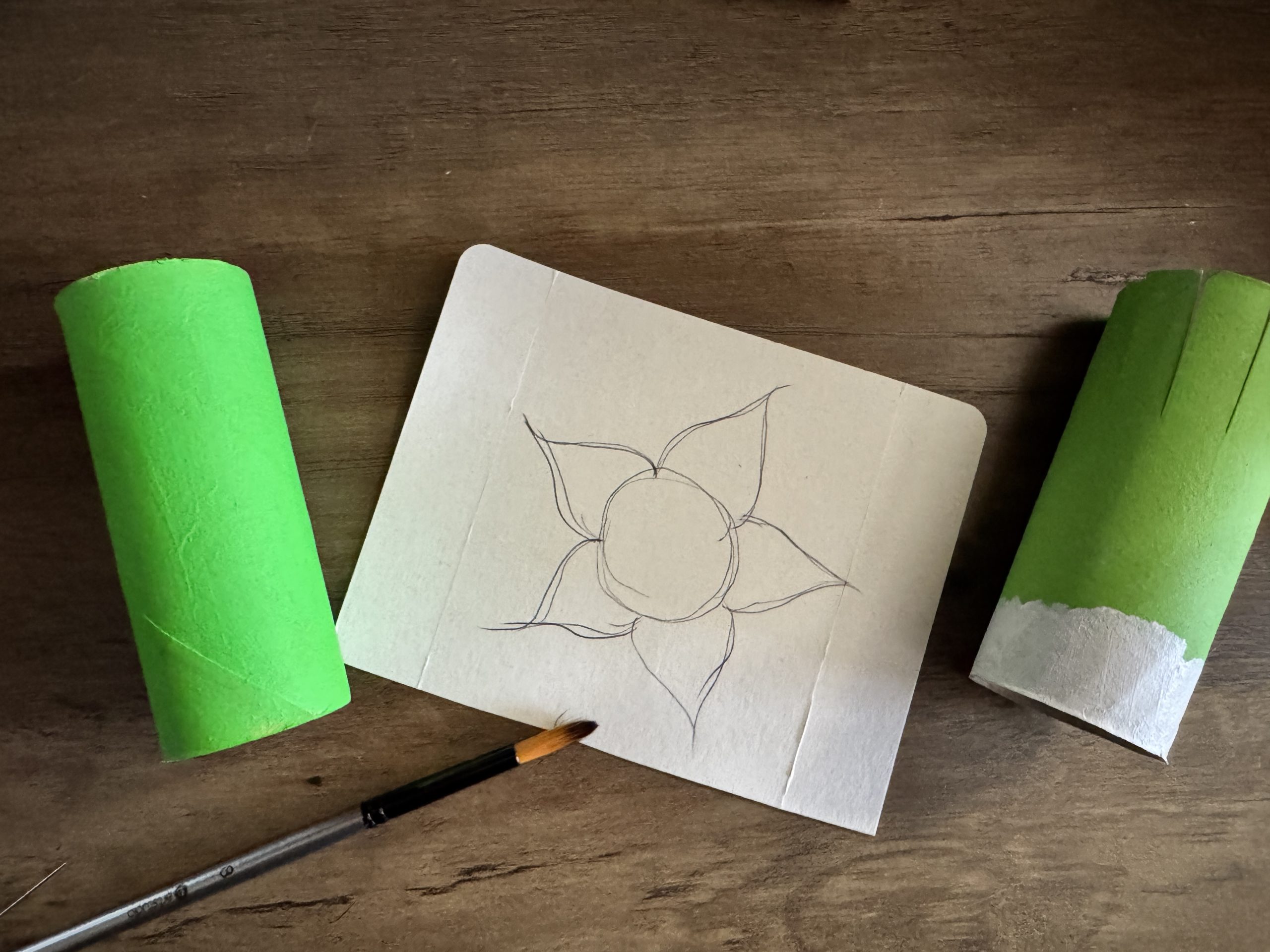 We painted our tubes in light green paint, adding white to the top.