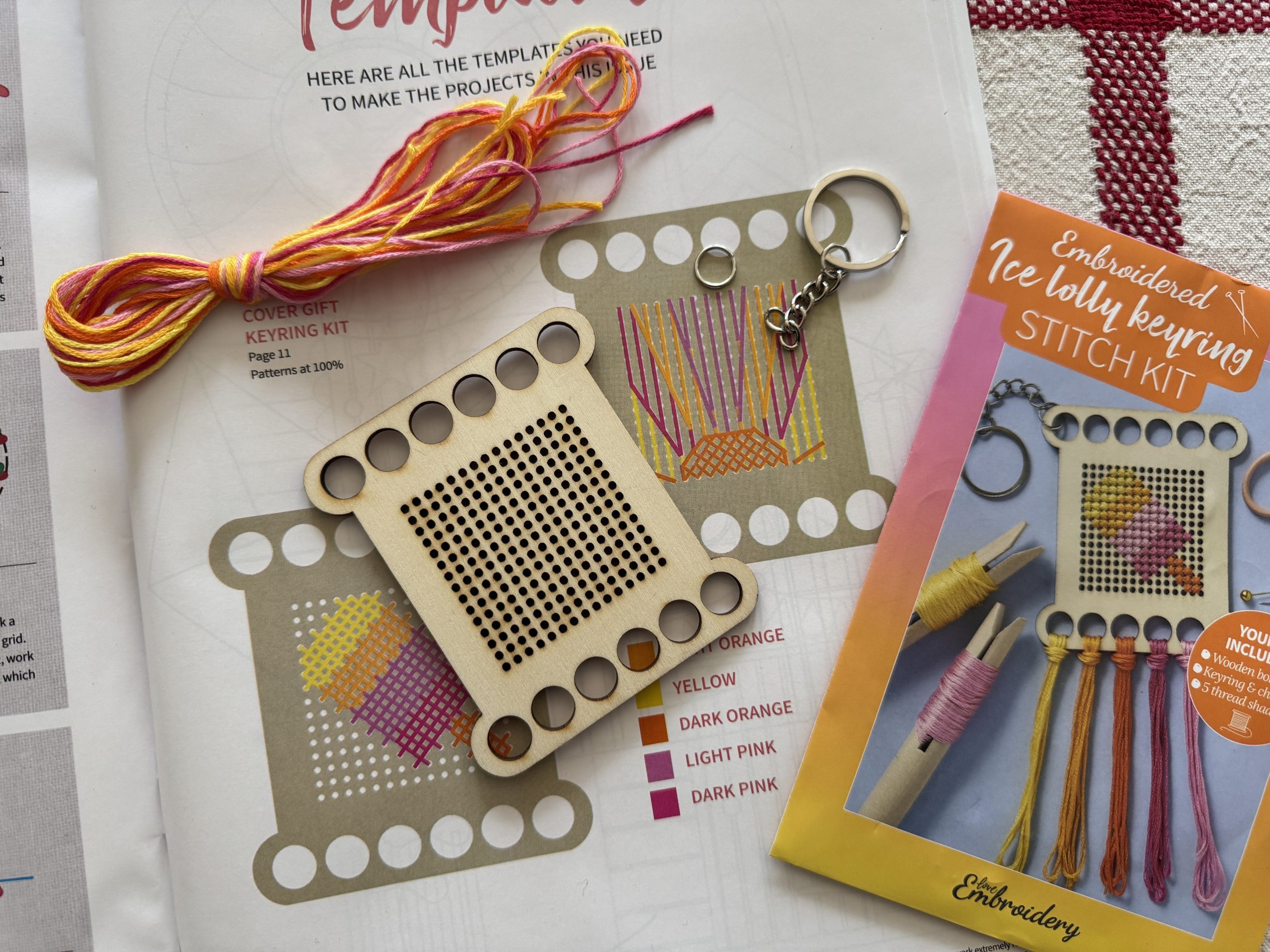 The only magazine subscription I have these days is Love Embroidery. It’s a great magazine packed with projects and inspiration and I love the cover gifts. The latest issue 67 included an embroidered ice lolly keyring stitch kit.