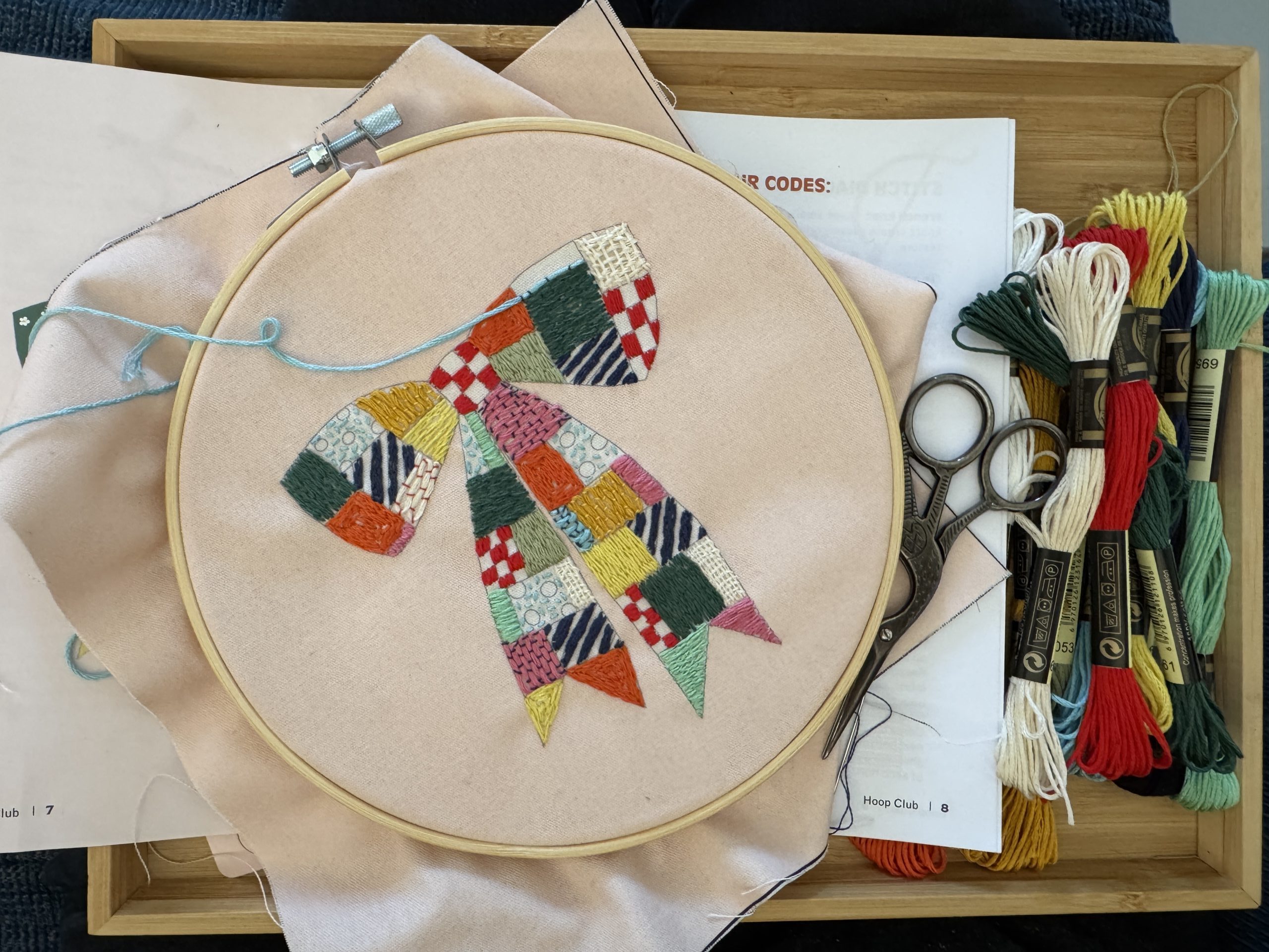 I finished my latest Cotton Clara Hoop Club kit which featured a large bow, divided into squares with lots of different stitches. It was quite a fun box to stitch, and I stitched it over the weekend. I’ve started the latest Craftpod box too, am really keen to keep on top of all the boxes I’ve signed up to receive!