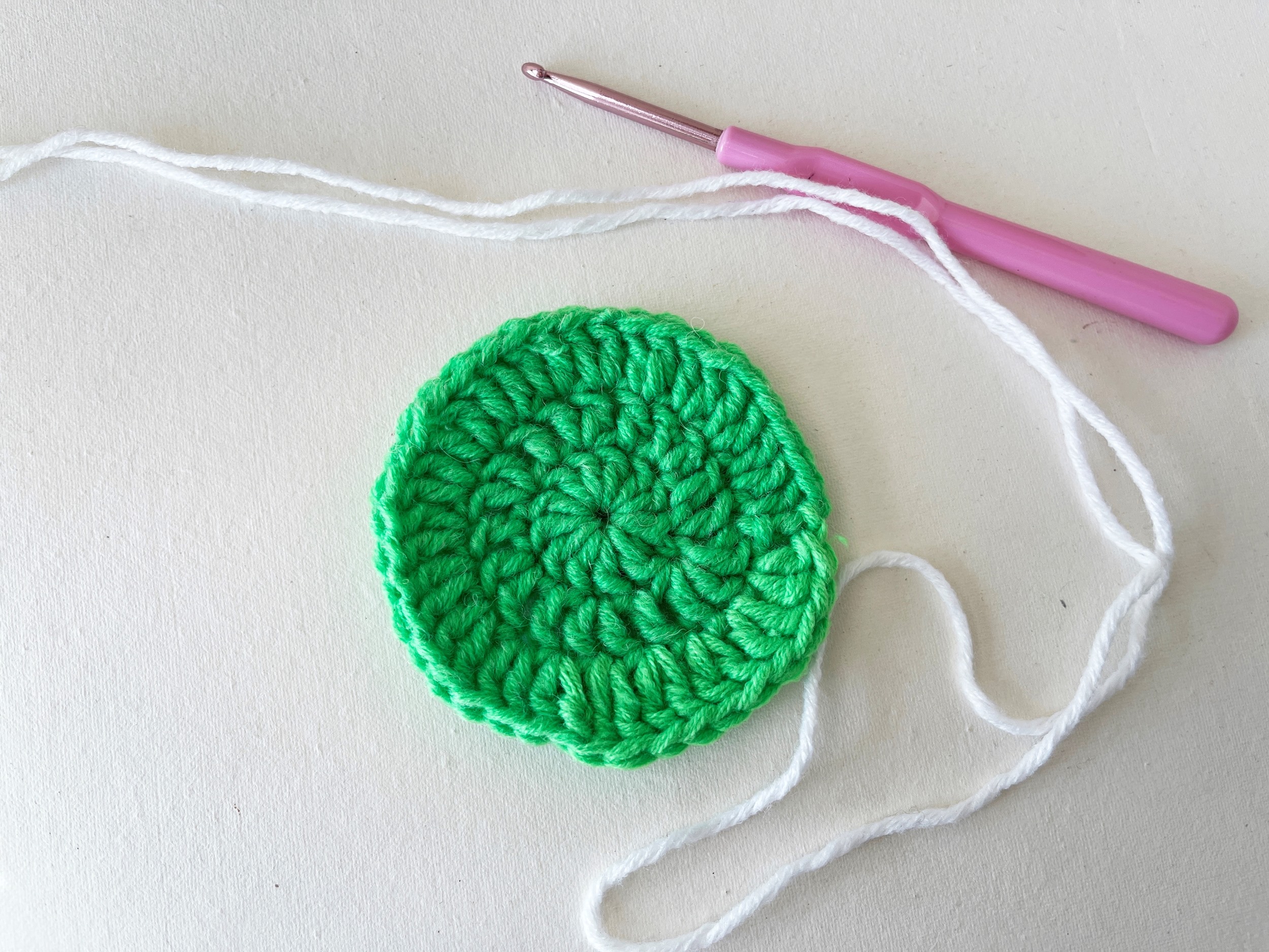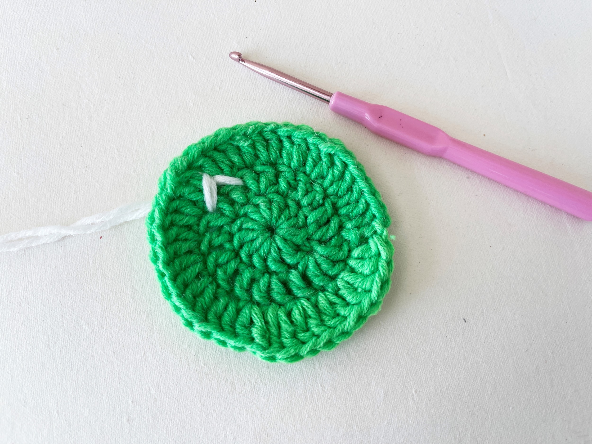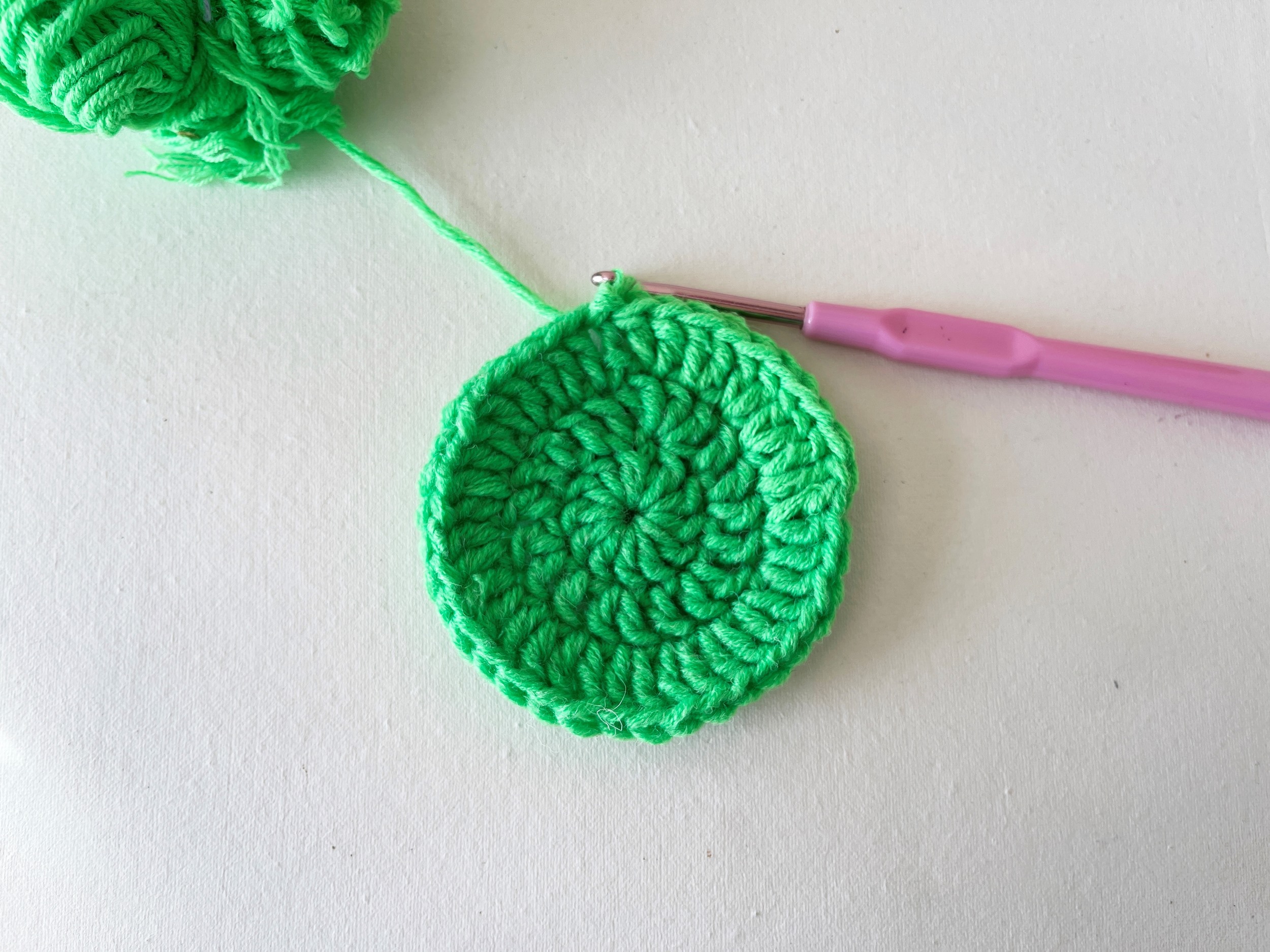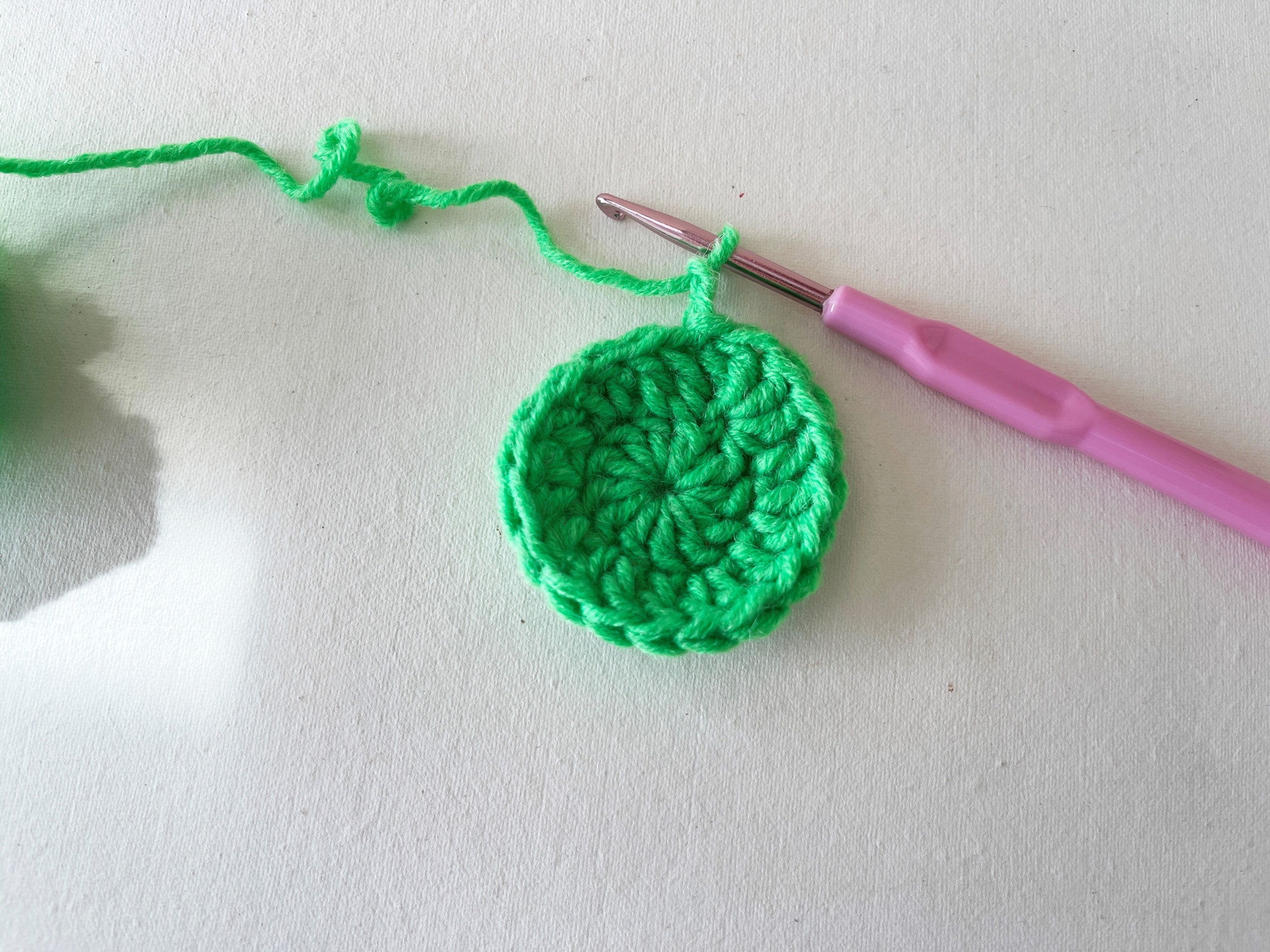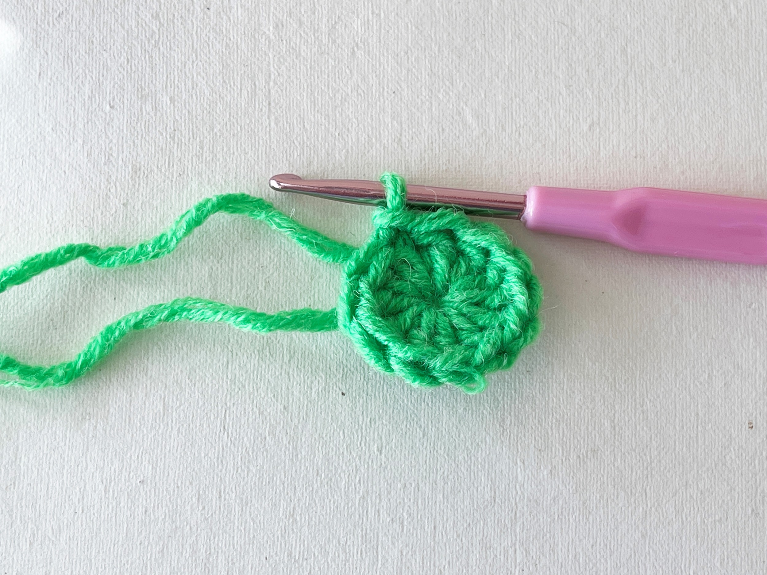 Work a single crochet through the chain stitch near the hook. Work 2 single crochet through each chain stitch of round 2.