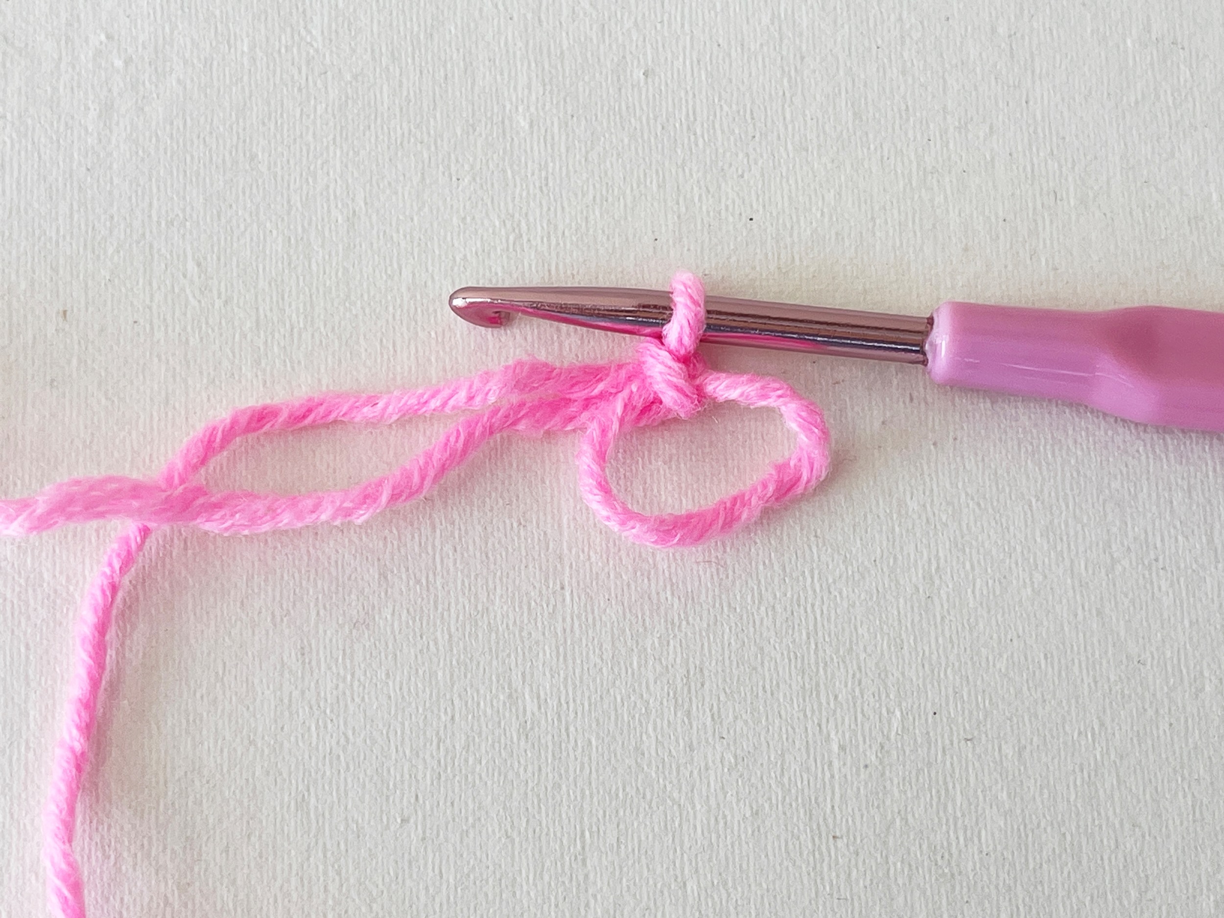 Select a colour for the coaster and hold the open end of the yarn bundle without cutting it from the bundle. We’ll start our crochet with a magic ring. Make a loop at the open end of the bundle and insert the hook through the loop.