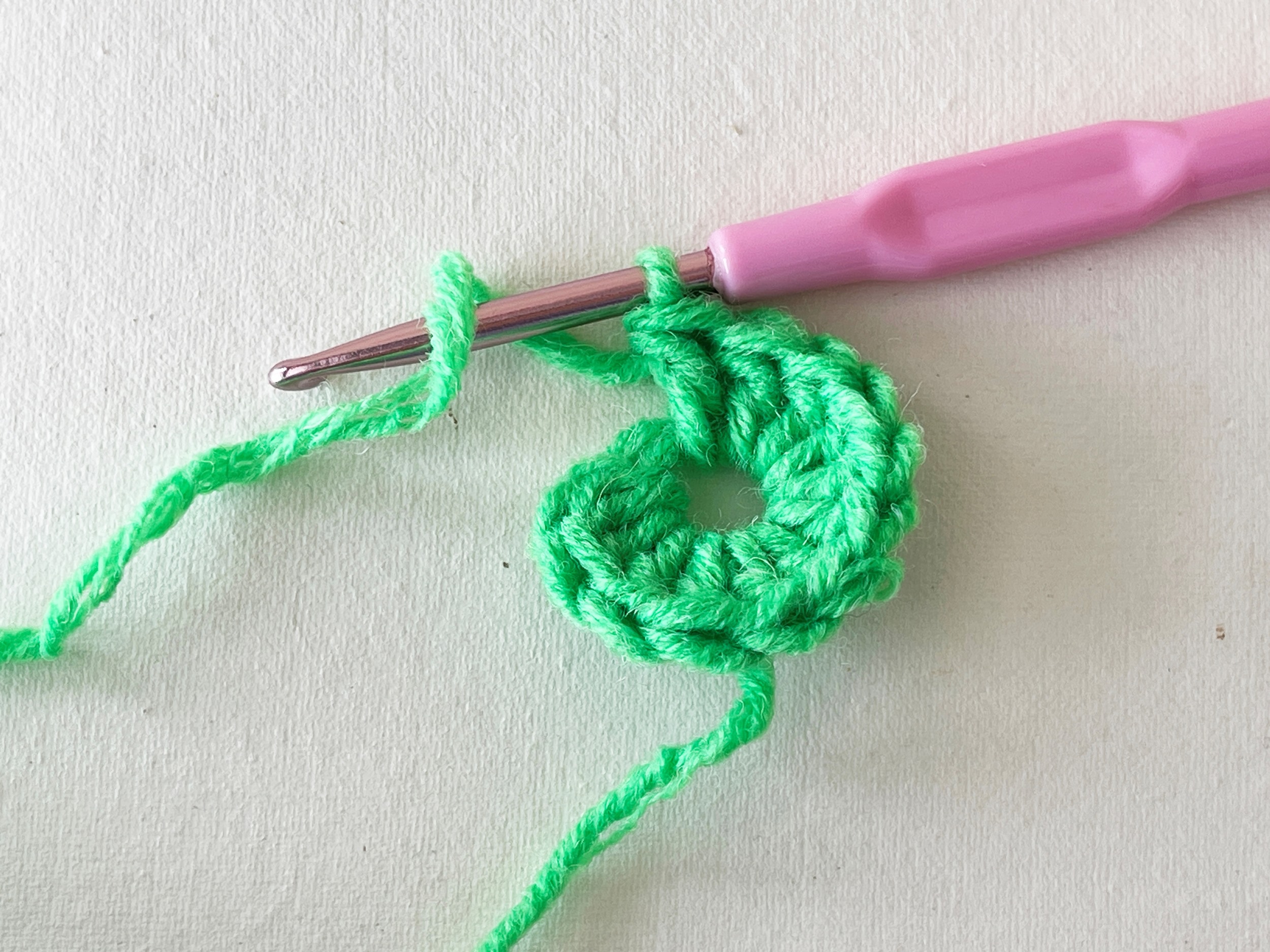 Work 11 or 12 more (a total of 12 or 13) single crochet through the magic ring.